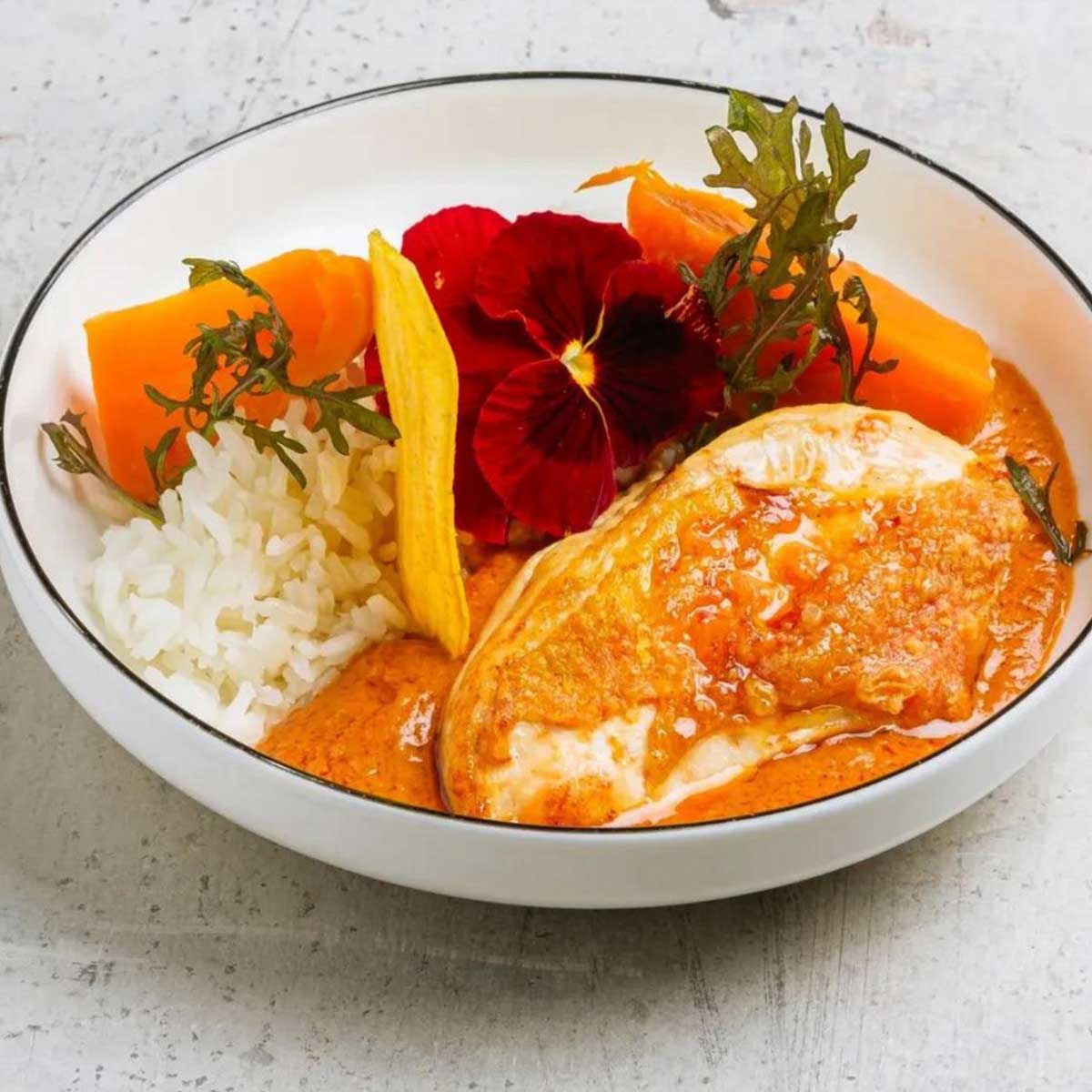 • Velouté de butternut, coco, châtaigne et pain d’épices